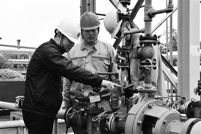 圖為寧波市環(huán)保局技術(shù)人員正在寧波樂金甬興化工有限公司進(jìn)行VOCs泄漏檢測。 朱智翔攝