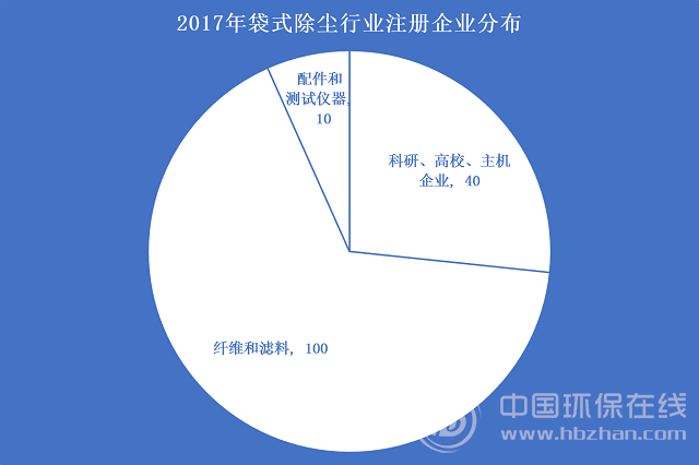 到了2017年,調(diào)查顯示,從事袋式除塵行業(yè)的注冊(cè)的企業(yè)150余家,分布在全國26個(gè)省(直轄市),其中科研、高校和主機(jī)企業(yè)40余家,纖維和濾料100余家,配件和測(cè)試儀器共10余家。