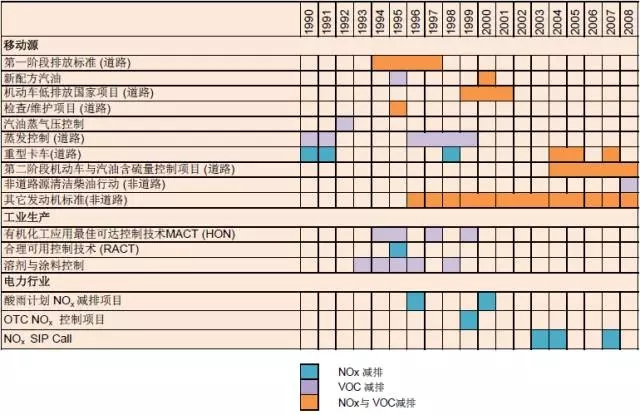 早在上世紀(jì)50年代洛杉磯光化學(xué)污染事件之后,美國就已認(rèn)定了近地面的臭氧濃度過高是因為NOx和VOCs過度排放引起的。治理VOCs排放,特別是嚴(yán)格控制機(jī)動車排放的舉措在西海岸的洛杉磯城市群取得了一定效果。