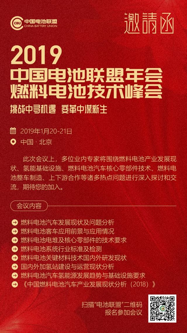 2019年1月20至21日,中國電池企業(yè)聯(lián)盟年會(huì)暨全國氫燃料電池汽車產(chǎn)業(yè)技術(shù)峰會(huì)將在京召開。本次峰會(huì)由中國電池聯(lián)盟、中國電子節(jié)能技術(shù)協(xié)會(huì)電池專委會(huì)、中國高科技產(chǎn)業(yè)研究會(huì)、清華大學(xué)、北京理工大學(xué)聯(lián)合舉辦。
