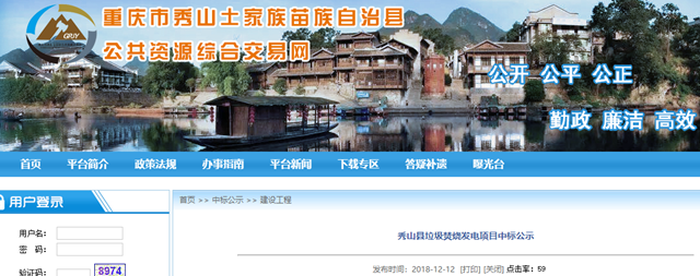重慶市秀山縣垃圾焚燒發(fā)電項目發(fā)布預中標公示,重慶三峰環(huán)境集團股份有限公司成為預中標社會資本方,生活垃圾處理服務(wù)費99元/噸,餐廚垃圾處理服務(wù)費157元/噸。