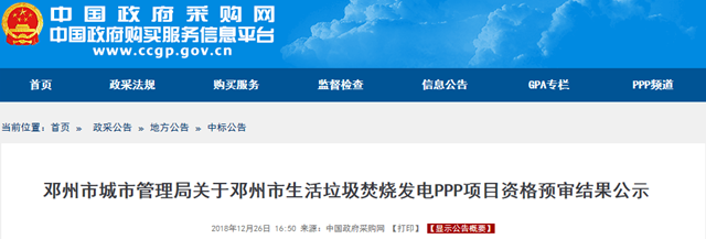 原標(biāo)題:河南鄧州垃圾焚燒PPP項(xiàng)目資審結(jié)果公示,康恒環(huán)境等三企入圍