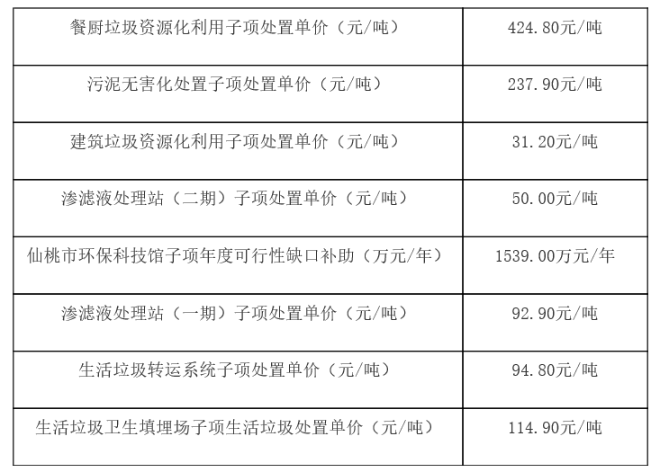 2019年1月11日,湖北仙桃循環(huán)經(jīng)濟(jì)產(chǎn)業(yè)園項(xiàng)目招標(biāo)工作落下帷幕,盈峰環(huán)境牽頭的、中聯(lián)環(huán)境和宇星科技發(fā)展(深圳)公司組成的聯(lián)合體斬獲此項(xiàng)目,總投資估算4.62億元,8個(gè)子項(xiàng)目中標(biāo)單價(jià)見下圖。