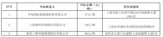 2019年1月11日,廣西崇左市生活垃圾焚燒項(xiàng)目預(yù)中標(biāo)結(jié)果公示,經(jīng)評(píng)審專(zhuān)家確認(rèn),中標(biāo)候選人依次為中電國(guó)際新能源、康恒環(huán)境、三峰環(huán)境,中標(biāo)金額見(jiàn)如下: