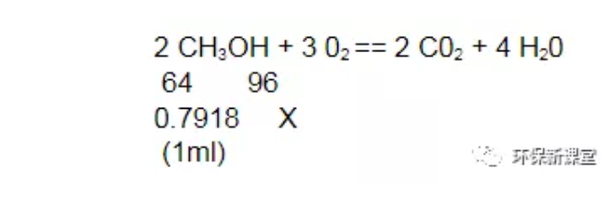 X = 1.1877 g,1ml 甲醇可以換算成1.1877g COD,1g甲醇可以換算成1.5g COD