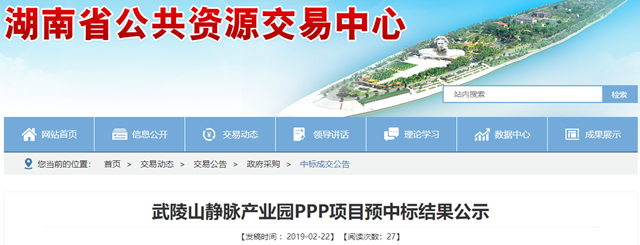 湖南省武陵山靜脈產(chǎn)業(yè)園PPP項目發(fā)布預(yù)中標(biāo)結(jié)果公示,北京首創(chuàng)環(huán)境投資股份有限公司(牽頭單位)/浙江省二建建設(shè)集團有限公司/中國輕工業(yè)廣州工程有限公司組成的聯(lián)合體成為預(yù)中標(biāo)社會資本。