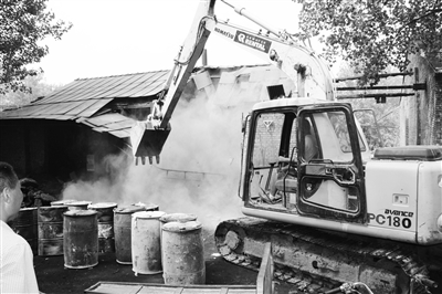 異地執(zhí)法組發(fā)現(xiàn)的“小散亂污”企業(yè)被依法拆除。