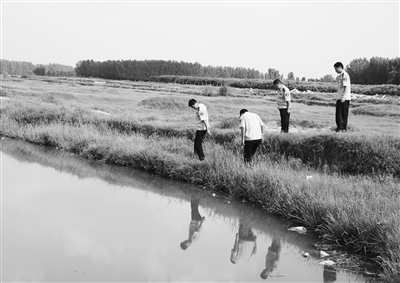 異地執(zhí)法人員在查找排污口。 羅景山 郭國(guó)立供圖