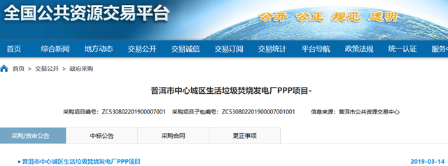 云南省普洱市中心城區(qū)生活垃圾焚燒發(fā)電廠PPP項(xiàng)目發(fā)布資格預(yù)審公告。