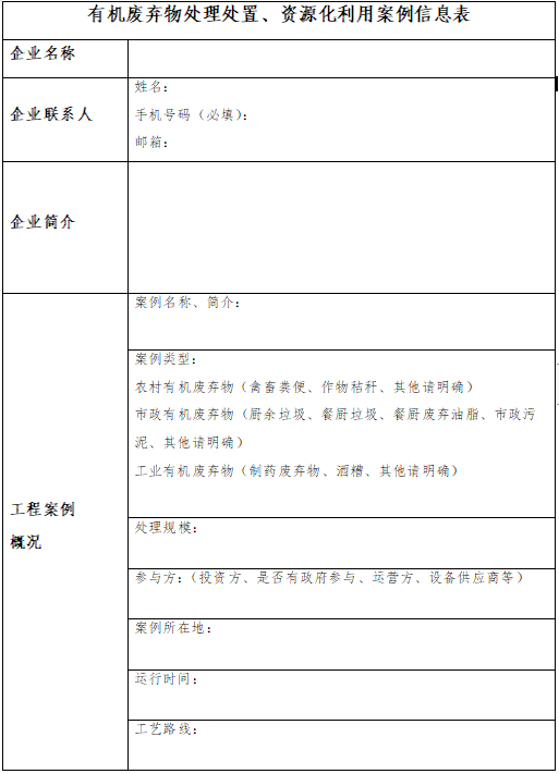 在此背景下,中國(guó)環(huán)聯(lián)擬面向行業(yè)征集“有機(jī)廢棄物處理處置、資源化利用典型案例”,征集范圍包括農(nóng)村有機(jī)廢棄物(作物秸稈、畜禽養(yǎng)殖廢棄物等)、市政有機(jī)廢棄物(廚余垃圾、餐廚垃圾、餐廚廢棄油脂、市政污泥等)、工業(yè)有機(jī)廢棄物(制藥有機(jī)廢棄物、酒精廢水等)的處理處置及資源化利用項(xiàng)目案例。請(qǐng)有意向的企業(yè)按附件填寫(xiě)申報(bào)表,并發(fā)郵件至以下郵箱地址。
