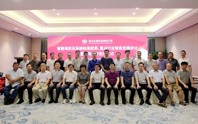 炎炎夏日酷暑難當,不敵潮鄉(xiāng)如火熱情。2019年7月30日,來自水泥、鋼鐵、電機、泵、科研院所等多個行業(yè)領域的60余位行業(yè)專家學者、部門領導、企業(yè)大咖等齊聚浙江永發(fā)機電有限公司(下文簡稱“永發(fā)機電”),共同見證“智能電機及系統(tǒng)標準起草、重點行業(yè)智能發(fā)展研討暨戰(zhàn)略合作簽約儀式”,深度探索包括水泥、鋼鐵、電機、泵等跨行業(yè)、跨領域智能化發(fā)展新思路與新方向。