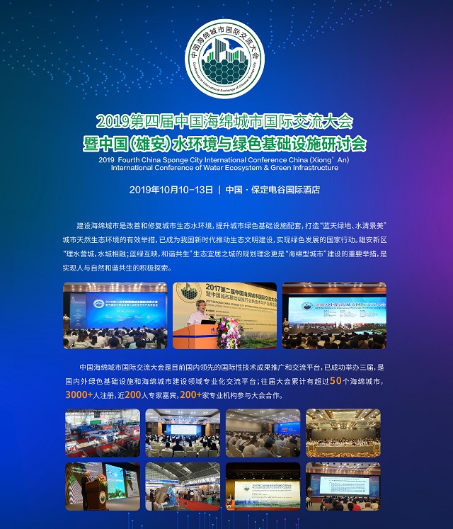 由全聯(lián)城市基礎設施商會舉辦的“2019第四屆海綿城市國際交流大會暨中國(雄安)水環(huán)境與綠色基礎設施發(fā)展研討會”將于10月10-13在保定市電谷國際酒店召開,屆時將邀請有關部門領導、國內外專家院士、有關企事業(yè)單位及媒體代表等出席大會,共同探討我國海綿城市建設、河湖治理及綠色基礎設施發(fā)展經驗和問題。共享行業(yè)先進技術產品和理念模式,共謀城市生態(tài)綠色發(fā)展大計。