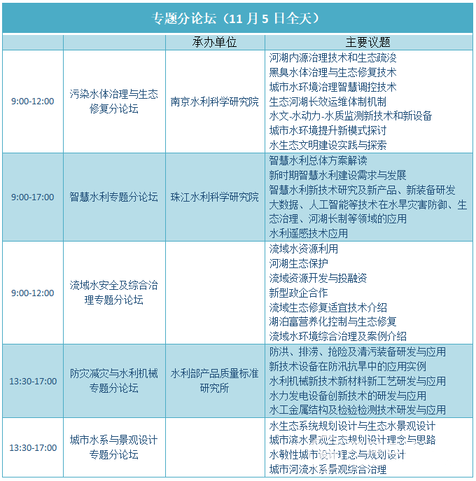 具體聊什么?在11月5日的論壇現(xiàn)場,強勁的專家陣容及企業(yè)代表將通過上述主題切入新時期水利工作重點及方向、強監(jiān)管與補短板、污染水體治理與生態(tài)修復、智慧水利、水利機械設備、防災減災、流域水安全與綜合治理板塊,全面解析水環(huán)境治理市場格局如何重構和變革,提前劇透一下: