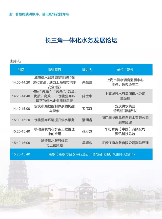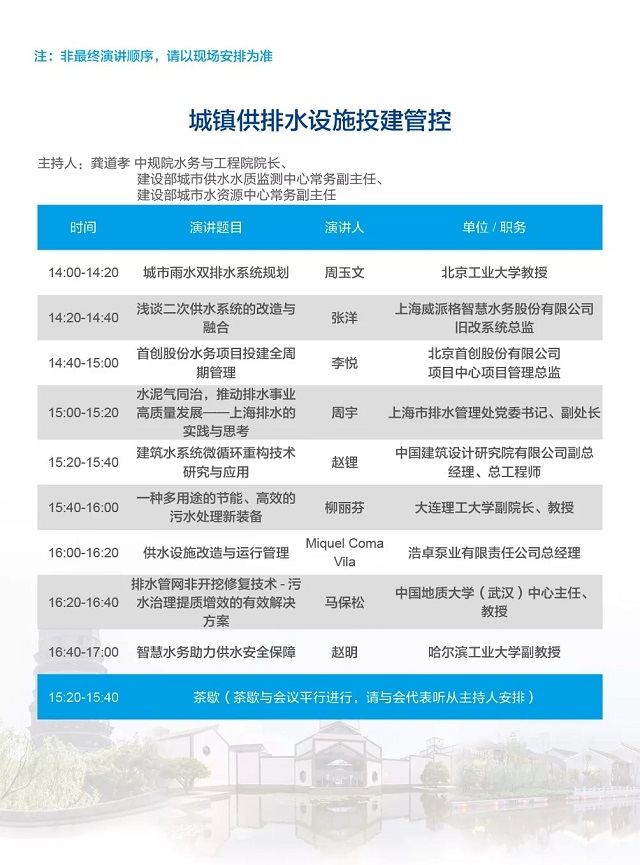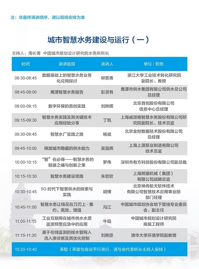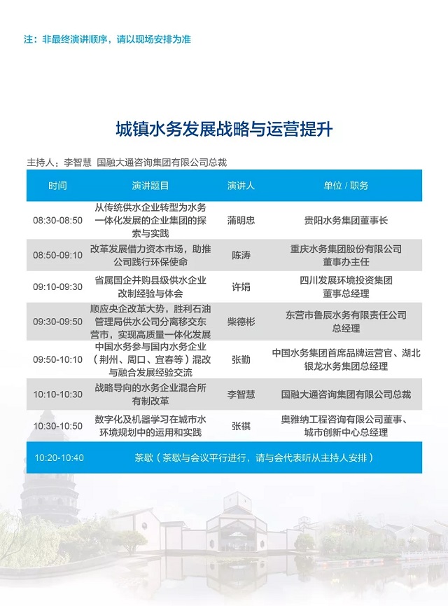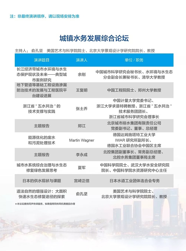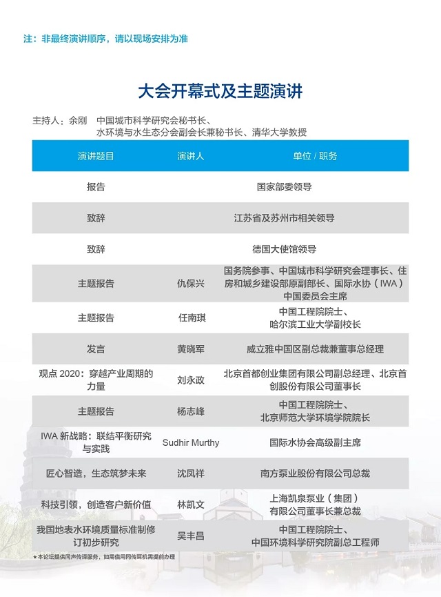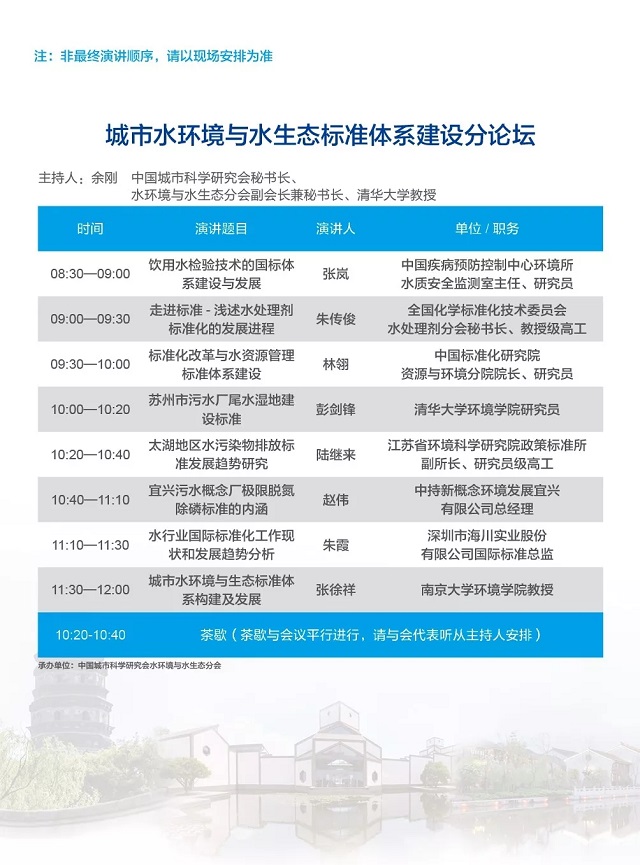 除以上分論壇外,蘇州論壇——高品質(zhì)水公共產(chǎn)品研討會(huì)、建筑節(jié)水論壇、城鎮(zhèn)水環(huán)境綜合整治與管理、中-法水務(wù)科技論壇等論壇議程正在確認(rèn)中……敬請(qǐng)期待!