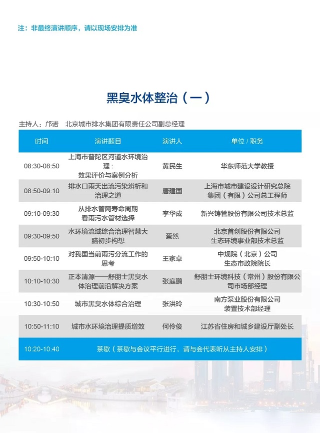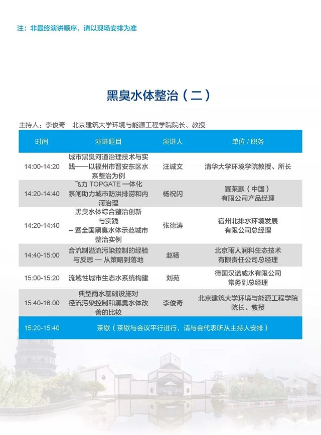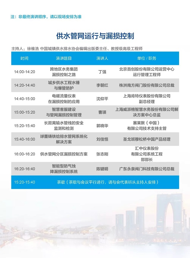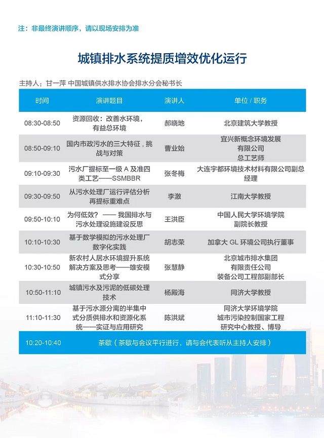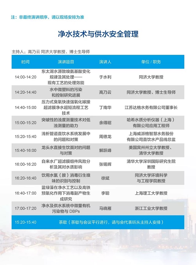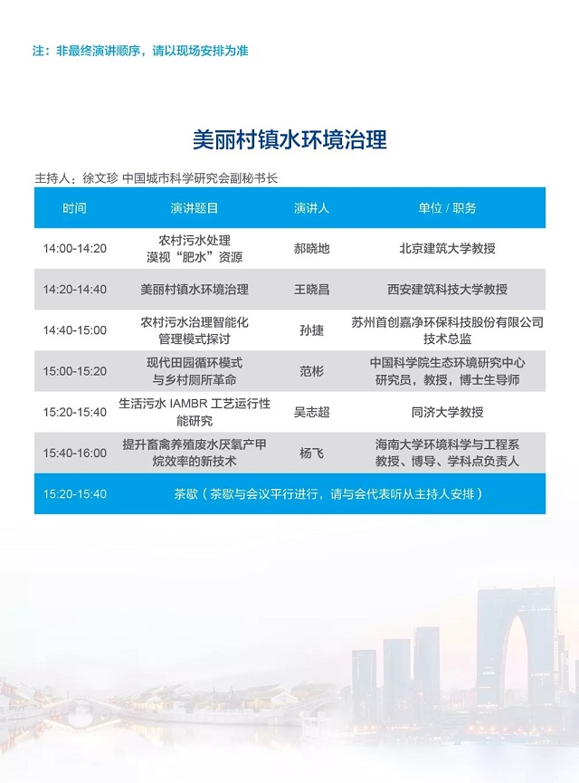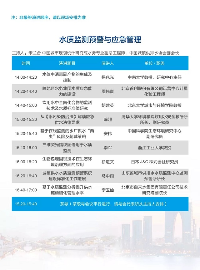 除以上分論壇外,蘇州論壇——高品質(zhì)水公共產(chǎn)品研討會(huì)、建筑節(jié)水論壇、城鎮(zhèn)水環(huán)境綜合整治與管理、中-法水務(wù)科技論壇等論壇議程正在確認(rèn)中……敬請(qǐng)期待!