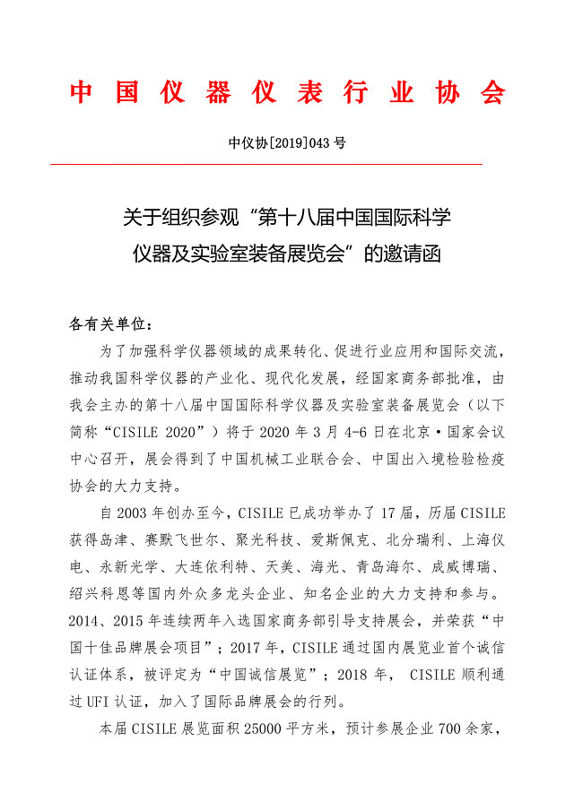 中國(guó)儀器儀表行業(yè)協(xié)會(huì)正式發(fā)文邀請(qǐng)單位組織人員參觀本次展會(huì),詳情文件如下:
