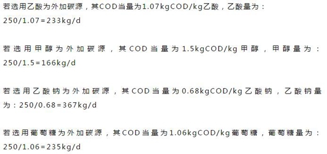 1、外部碳源投加量簡(jiǎn)易計(jì)算方法