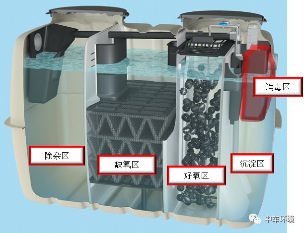 中國(guó)中車(chē)的農(nóng)村污水處理成套裝備已集成了消毒藥劑的儲(chǔ)存、投加與混合功能,操作方便,可迅速投入使用。例如,圖1-2為中國(guó)中車(chē)某型凈化槽及其消毒功能的使用方法。其采用緩釋氯片作為消毒劑,使用時(shí)將氯片放入藥劑筒,通過(guò)旋轉(zhuǎn)調(diào)節(jié)藥劑筒底部的開(kāi)口即可調(diào)節(jié)消毒劑的溶解量。