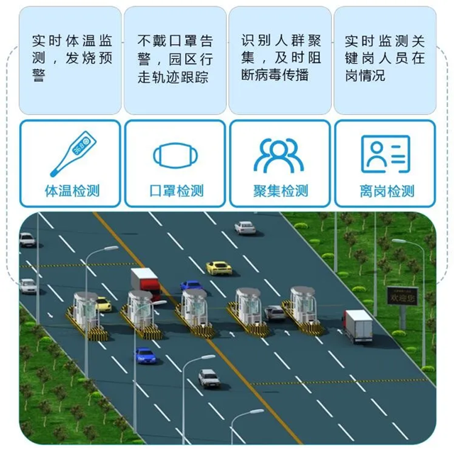 針對(duì)疫情防控,平臺(tái)增加疫情監(jiān)測(cè)子系統(tǒng),利用生物識(shí)別技術(shù)、熱成像測(cè)溫技術(shù)、視頻智能分析等技術(shù)手段,對(duì)出入口行人快速測(cè)量,及時(shí)發(fā)現(xiàn)體溫異常人員,執(zhí)行快速干預(yù)手段,防止病毒疫情在園區(qū)出現(xiàn)大范圍感染人員擴(kuò)散的危險(xiǎn)。