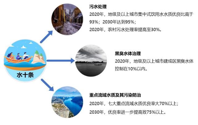 《水污染防治行動(dòng)計(jì)劃 》,又稱“水十條”,是我國(guó)水環(huán)境治理政策建設(shè)的里程碑,標(biāo)志著我國(guó)水環(huán)境治理開(kāi)始從過(guò)去的污水治理、截污管網(wǎng)等末端治理模式,延伸至源頭控制、過(guò)程阻斷以及末端治理全過(guò)程協(xié)同的新模式,涉及污水治理、流域修復(fù)、城市排污管網(wǎng)建設(shè)、以及景觀建設(shè)等眾多行業(yè)領(lǐng)域。