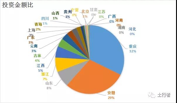 重慶投資金額超過1.79億元,占3月總投資額的32%,投資金額最多;