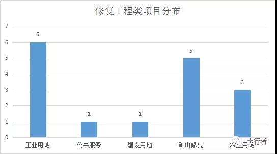 修復(fù)工程施工類項(xiàng)目金額最多的是工業(yè)用地和礦山修復(fù)