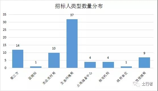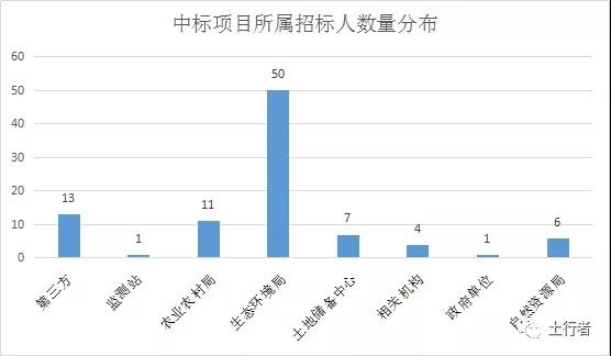 中標(biāo)項(xiàng)目所屬招標(biāo)單位概況,共計(jì)103個(gè)項(xiàng)目所屬80家招標(biāo)人。其中56個(gè)項(xiàng)目歸各地生態(tài)環(huán)境局所屬,占項(xiàng)目方的54.4% 第三方招標(biāo)人有15個(gè) 占項(xiàng)目方的14.6%。生態(tài)環(huán)境局為主要招標(biāo)人共計(jì)37家 占招標(biāo)人的46.25%。