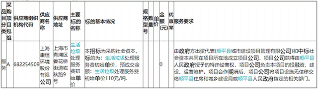 預中標金額:垃圾處理服務費初始單價為85.6元/噸