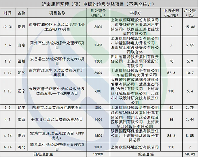 原標題:50億后再添8億+,康恒預中標寶雞&順平焚燒PPP項目