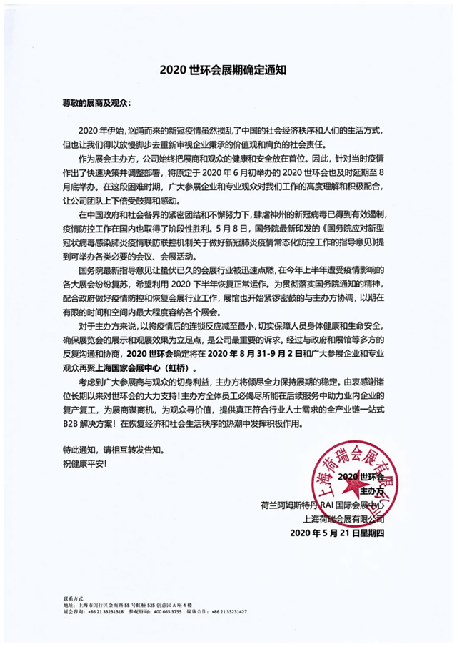 2020世環(huán)會展期確定通知