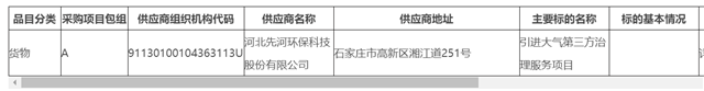 2020年5月21日,中國(guó)河北政府采購(gòu)網(wǎng)發(fā)布了《永年縣環(huán)境保護(hù)局引進(jìn)大氣第三方治理服務(wù)項(xiàng)目中標(biāo)公告》,顯示河北先河環(huán)??萍脊煞萦邢薰緸樵擁?xiàng)目的中標(biāo)供應(yīng)商,中標(biāo)金額為2387萬(wàn)元;該項(xiàng)目的采購(gòu)內(nèi)容為大氣污染防治咨詢和服務(wù)。