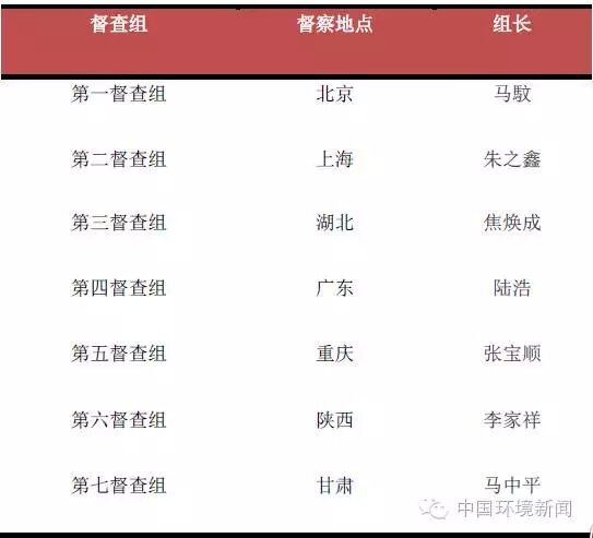 2016第二批環(huán)保督查組督察地點(diǎn)及人員安排