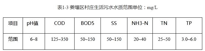 村莊子項(xiàng)目需要覆蓋的村莊收集的均為居民生活污水;來(lái)自居民日常的沖廁廢水、淋浴廢水、清洗廢水、廚房廢水等。根據(jù)項(xiàng)目可行性研究報(bào)告及批復(fù),確定本項(xiàng)目設(shè)計(jì)主要進(jìn)水水質(zhì)如下表。