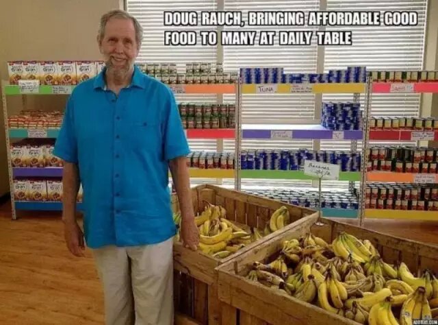 是的,Doug Rauch,他在做。他曾是美國連鎖超市Trader Joe’s的創(chuàng)始人,并且在那里工作了31年,可稱作零售業(yè)的老司機。據(jù)了解,Rauch是在2010-2012年參加哈佛大學高級領導者聯(lián)盟學習時產生了創(chuàng)建Daily Table的想法。他最初的想法是解決窮人吃不飽(不夠卡路里)的問題。但經(jīng)過研究發(fā)現(xiàn),美國有幾百個與Food Bank類似的大大小小公益組織,都旨在提供熱量,而不是營養(yǎng)。所以他開始將注意力轉移到如何讓低收入者吃得健康上。根據(jù)設計的商業(yè)模式,Daily Table將能自給自足持續(xù)運轉下去,而不需要依靠外界的資金捐贈。