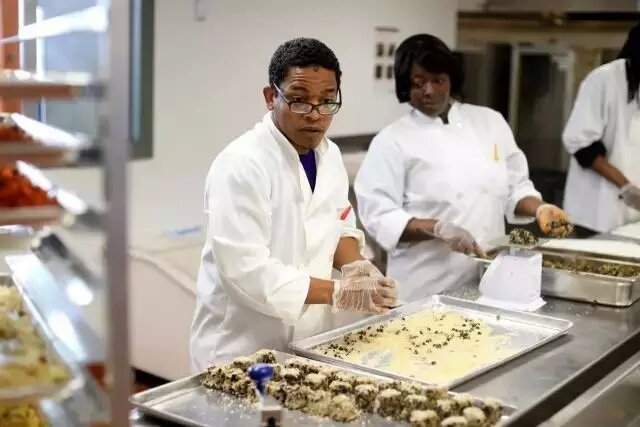 店里首席廚師也來頭不小,Ismail Samad先生曾供職于包括米其林在內的多家餐廳。現(xiàn)在他的任務可不只是將食物做好吃那么簡單,挑戰(zhàn)多著呢。試想2000磅胡蘿卜擺在你面前,需要采用有創(chuàng)造性的方法烹飪并要易于保存,然后賣給經(jīng)濟收入較低的居民,這是什么感覺?而他每天都要帶領團隊面臨這種挑戰(zhàn)。同時,這些成品必須經(jīng)過膳食指南的嚴格檢驗以保證健康營養(yǎng)。此外,重要的話說三遍,便宜。每份主菜售價在1.79-4.99美元之間,配菜為50美分-1美元,湯為1.99-3.99美元。