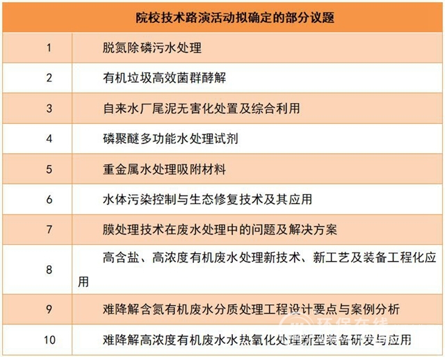 意識到這一點,為使業(yè)內(nèi)人士明確當下廢水零排放相關(guān)技術(shù)的研究方向,2020院校技術(shù)路演活動擬定了10大議題,將圍繞廢水零排放進行了廣泛的交流和探討,為水處理高質(zhì)量轉(zhuǎn)型升級創(chuàng)造有利條件。具體如下: