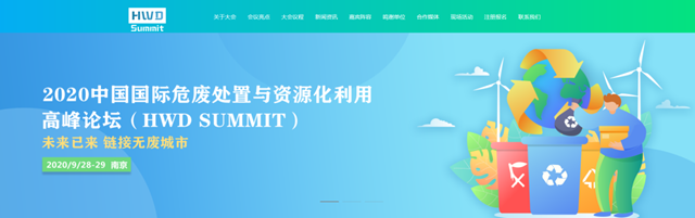 2020中國國際危廢處置與資源化利用高峰論壇(HWD Summit 2020)將在9月28日—29日在南京召開。