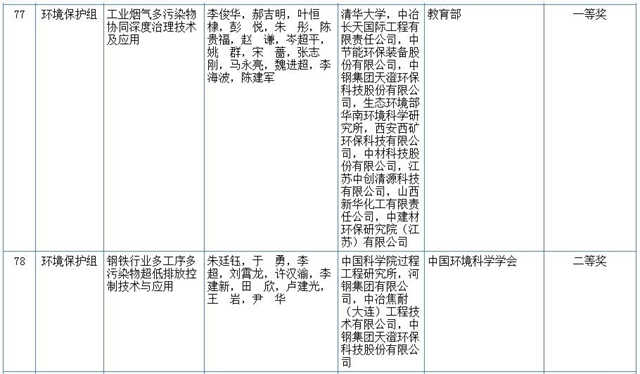 2020年度國家科學(xué)技術(shù)獎初評工作已經(jīng)結(jié)束。根據(jù)《國家科學(xué)技術(shù)獎勵條例實施細則》的規(guī)定,現(xiàn)將初評通過的46項國家自然科學(xué)獎項目、47項國家技術(shù)發(fā)明獎通用項目、133項國家科學(xué)技術(shù)進步獎通用項目,以及2019年度初評通過、因異議處理中止評審,現(xiàn)已調(diào)查處理完畢,按規(guī)則提交2020年度評審的國家技術(shù)發(fā)明獎通用項目1項和國家科學(xué)技術(shù)進步獎通用項目1項,在科技部網(wǎng)站公布。專用項目另行公布。環(huán)保領(lǐng)域九個項目獲獎,包括污水深度生物脫氮技術(shù)及應(yīng)用、強化廢水生化處理的電子調(diào)控技術(shù)與應(yīng)用、城鄉(xiāng)垃圾分質(zhì)利用與二次污染控制關(guān)鍵技術(shù)裝備、工業(yè)煙氣多污染物協(xié)同深度治理技術(shù)及應(yīng)用等。