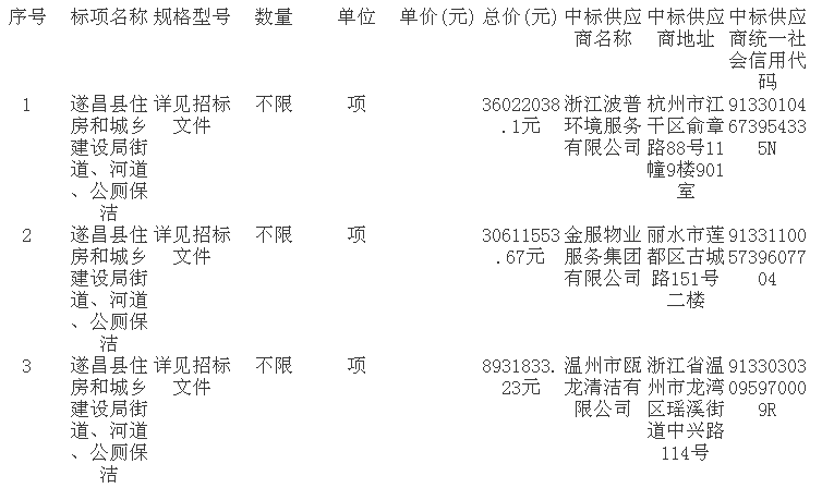原標(biāo)題:浙江遂昌縣縣城街道清掃、河道公廁保潔及垃圾中轉(zhuǎn)服務(wù)項(xiàng)目的中標(biāo)公告
