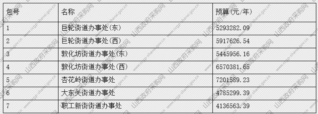環(huán)保在線從山西省政府采購網(wǎng)獲悉,太原市杏花嶺區(qū)城鄉(xiāng)環(huán)衛(wèi)一體化政府購買服務(wù)項目于近期招標,分5大部分開啟招標,預(yù)算金額近10728萬元/年,項目以3+2+3模式合作8年,其中過渡期1個月,試用期1年。