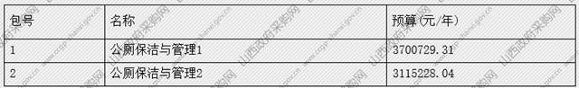 項目五分2個包,投標人需負責公廁管理及維護和公廁應(yīng)急保障等,每年預(yù)算681.60萬元。本項目無特定資格要求,開標時間定為9月9日。