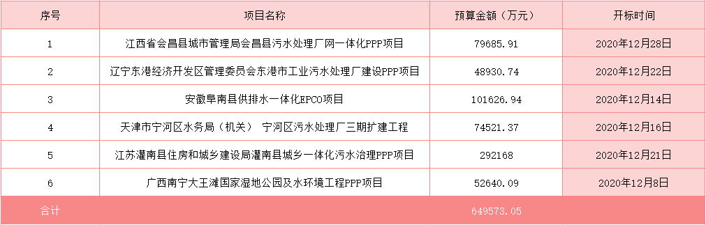 6個(gè)項(xiàng)目,總投資額超54億元,水處理標(biāo)的風(fēng)采依舊。