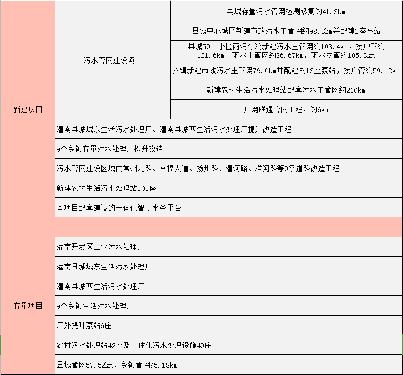 項(xiàng)目?jī)?nèi)容:新建污水收集管網(wǎng)、污水提升泵站和改造一座污水處理廠。