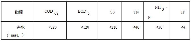 設(shè)計(jì)進(jìn)水水質(zhì)及出水水質(zhì)指標(biāo):