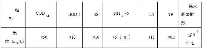 設(shè)計(jì)出水水質(zhì)指標(biāo):