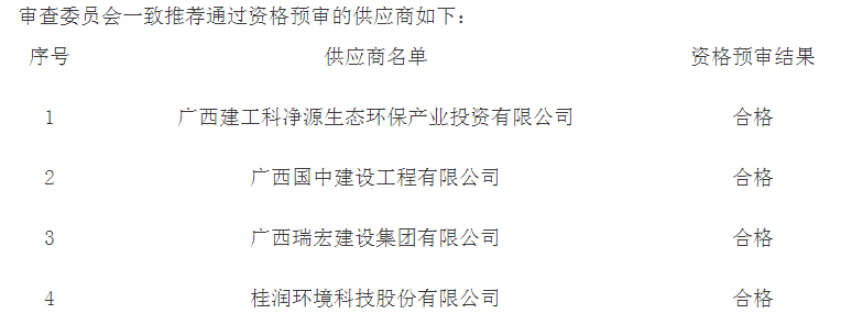 廣西省合山市管網(wǎng)修復(fù)和污水處理廠(chǎng)改造工程PPP項(xiàng)目資格預(yù)審結(jié)果公告發(fā)布,其中有4企通過(guò)資格預(yù)審。
