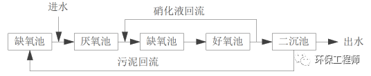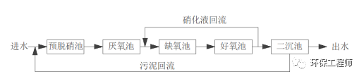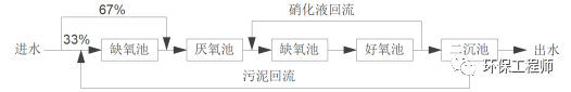 該工藝適合原水中TN含量比較高的廢水,只要缺氧池的容積設(shè)計(jì)的合理可以完全反硝化,從而為厭氧釋磷提供良好的厭氧環(huán)境。