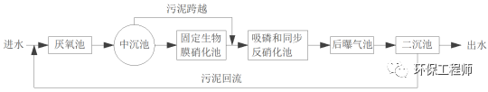 其實(shí)該工藝還有一定的缺陷,比如:①厭氧池中無法完全吸附有機(jī)物,導(dǎo)致固定膜反應(yīng)器進(jìn)水中攜帶有BOD,一方面抑制硝化反應(yīng),另一方面造成有機(jī)物的浪費(fèi)和能耗的增高;②在進(jìn)水氨氮偏高時,缺氧池中反硝化除磷菌不能徹底的去除硝氮,導(dǎo)致出水TN的升高。