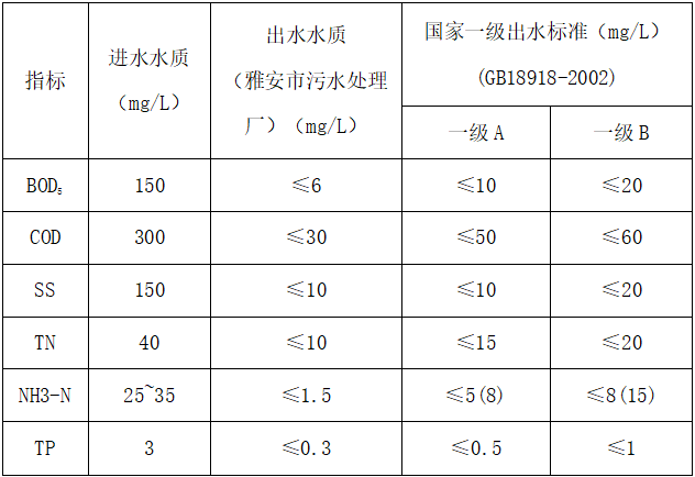 市本級(jí)項(xiàng)目“雅安市污水處理廠新建項(xiàng)目”出水標(biāo)準(zhǔn)采用四川省發(fā)布的《四川省岷江、沱江流域水污染排放標(biāo)準(zhǔn)》(DB51/2311-2016),排放指標(biāo)超過了國家對(duì)城鎮(zhèn)污水處理廠污染物排放標(biāo)準(zhǔn)(GB1891-2002)的一級(jí)標(biāo)準(zhǔn)A標(biāo)準(zhǔn),并滿足城鎮(zhèn)回用水質(zhì)要求。鄉(xiāng)鎮(zhèn)污水處理站執(zhí)行一級(jí)A標(biāo)準(zhǔn)。污水處理廠/站運(yùn)營維護(hù)的工作內(nèi)容及質(zhì)量標(biāo)準(zhǔn)符合污水處理設(shè)施適用法律和國家行業(yè)規(guī)范、標(biāo)準(zhǔn)的每一項(xiàng)規(guī)定。