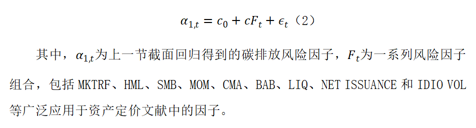 碳溢價的一個可能解釋是機構(gòu)投資者實施可持續(xù)政策而對高碳排放股票進行撤資和排除性篩選,導(dǎo)致投資組合的多元化不足?;貧w模型為: